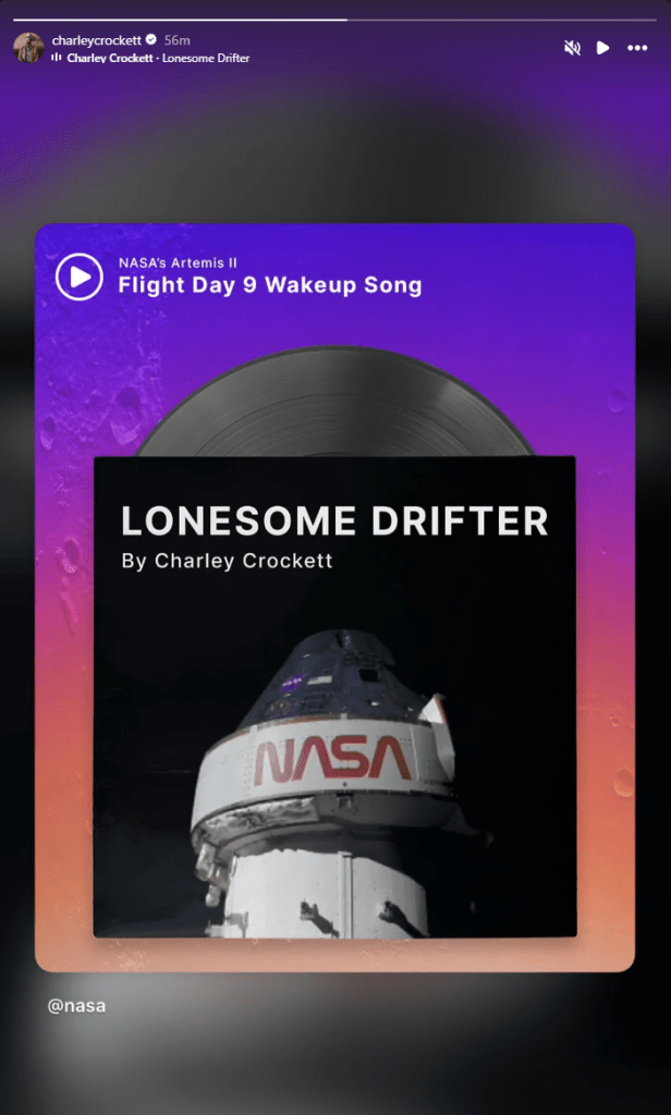 Le 1er avril, le monde entier a tourné son attention vers le Centre spatial Kennedy en Floride alors que la NASA se préparait à lancer quatre astronautes sur la Lune. Même si les astronautes ne marcheront pas sur la surface de la Lune, c’est la première fois depuis plus de cinq décennies que la NASA tente un tel exploit. Alors que l’équipage fait déjà le tour de la Lune, la NASA a célébré ce moment en révélant la liste des chansons qu’ils jouent pour réveiller les astronautes. Et il semblerait que le chanteur country Charley Crockett se soit retrouvé à faire un voyage dans l’espace grâce à « Lonesome Drifter ».