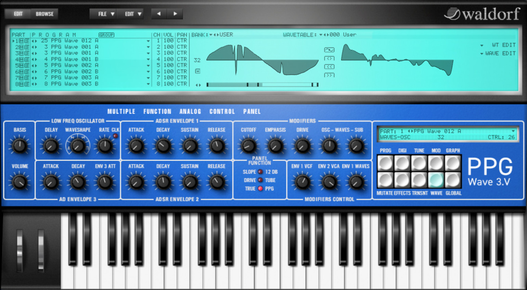 Une autre option qui n’a pas encore fait son entrée dans mon studio est le plutôt magnifique Groove Synthèse 3ème Vague. Plus qu’un simple hommage, il reprend l’ensemble du concept et l’exploite plus loin que Wolfgang Palm ne l’a jamais fait, et c’est l’un des meilleurs synthés numériques du marché.